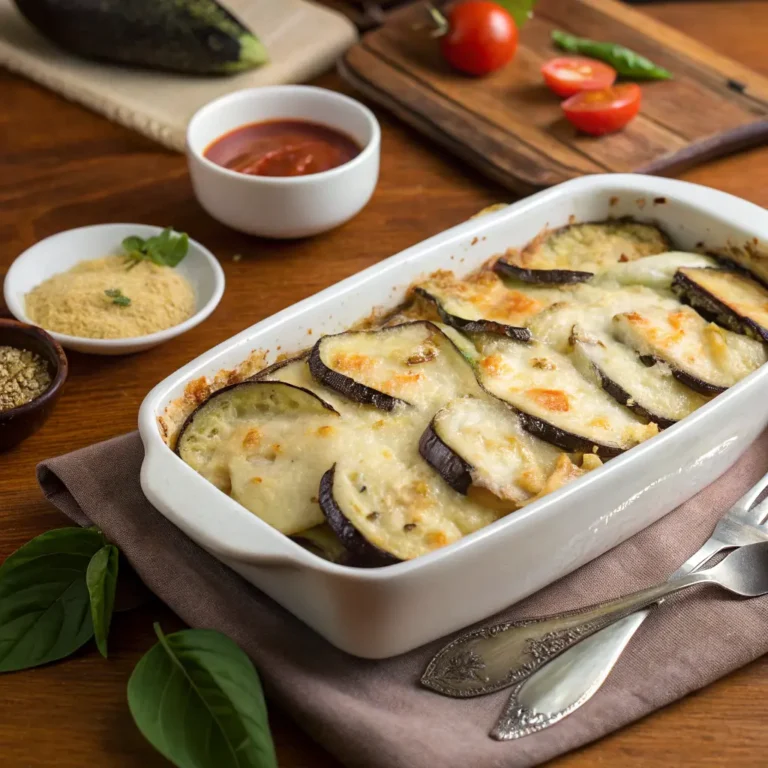 مسقعة الباذنجان والبطاطس بالبشاميل الشهية